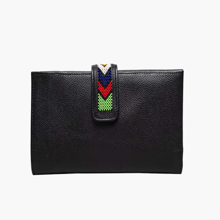 • Leather flap closure with Maasai beaded accent