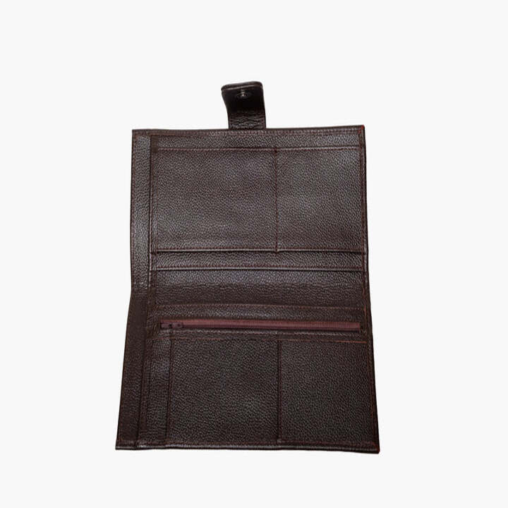 A refined travel companion with an artisanal signature, this elegant wallet is handcrafted in Nairobi from premium pebbled leather for timeless, everyday function. It opens flat for easy organisation with spacious slip compartments and a secure zip pocket, finished with a subtle Maasai beaded accent on the tab.