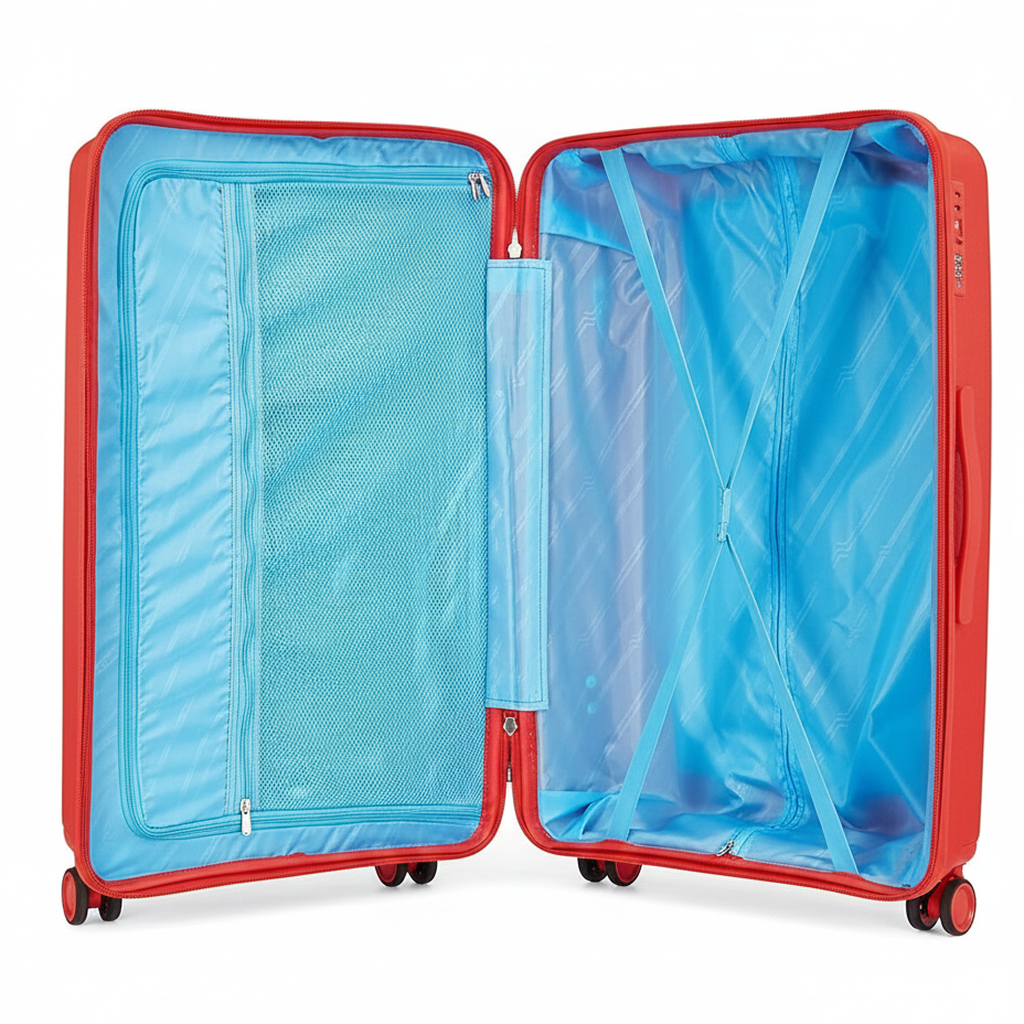 This luggage includes an integrated TSA-approved combination lock, allowing Transportation Security Administration officers to open and re-lock your bag using a master key during security screenings. It keeps your belongings secure while ensuring smooth travel through U.S. airports.
